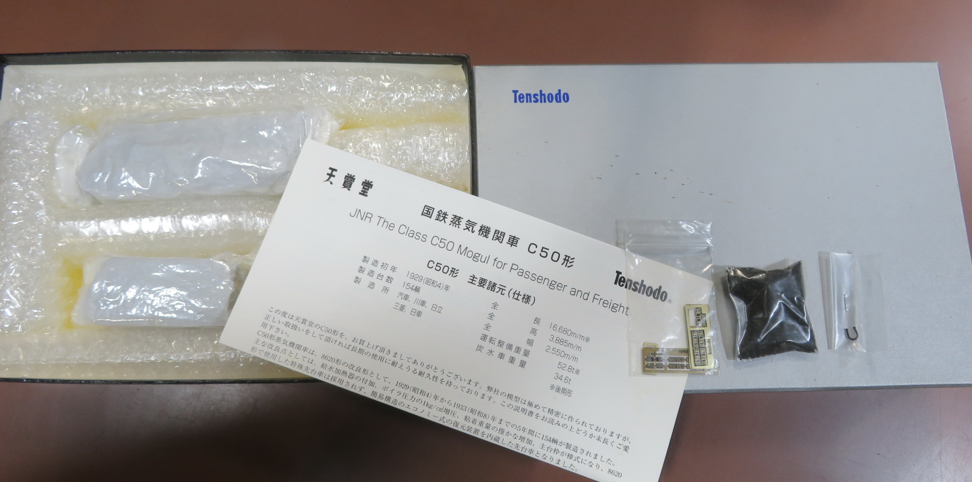 | 78424 | 16 | 天賞堂 | 国鉄C50形 デフ無 | \178,000 | No559塗装加工、機関士助士乗せ 前カプラーケーディ、アンケート無 スポンジプチプチ代用、ナンバー使用 (残あり)箱イタミ少 美品 委託品 |