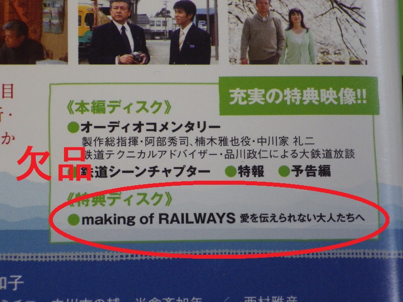 | 78118 | N | 松竹株式会社/TOMYTEC | RAILWAYS 愛を伝えられない大人たちへ [豪華版] | \4,800売約済 | 映画DVDと鉄道コレクション富山地方鉄道モハ14761・モハ14762のセット,特典DVD欠品,パッケージ帯なし,動力組込,パンタ・カプラー交換 | 写真 写真 写真 |