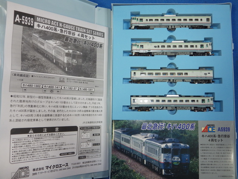 | 78198 | N | マイクロエース | キハ400系 急行宗谷 4両セット | \13,800売約済 | A‐5939,ステッカー未貼付,美品 | 写真 写真 |