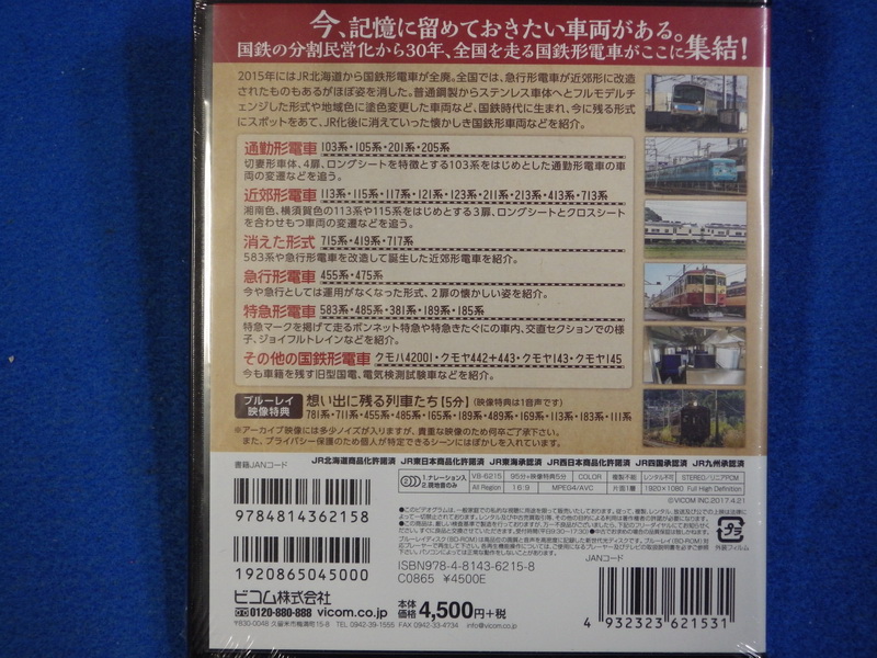 ビコム | 国鉄形車両の軌跡 電車編 JR誕生後の活躍と歩み | \1,500 | BD‐6215,95分+映像特典5分,2017年,シュリンク包装未開封 | 写真 写真 写真 |