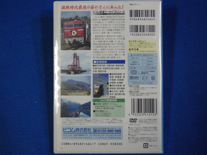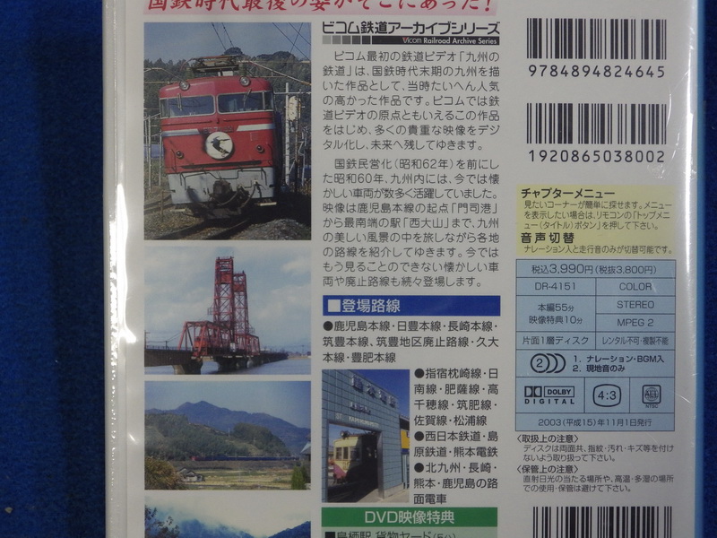 | 78222 | DVD | ビコム | ビコム鉄道アーカイブシリーズ 九州の鉄道~昭和60年・国鉄時代最後の記録~ | \1,200 | DR‐4151,本編55分+映像特典10分,2003年,シュリンク包装未開封 | 写真 写真 写真 |